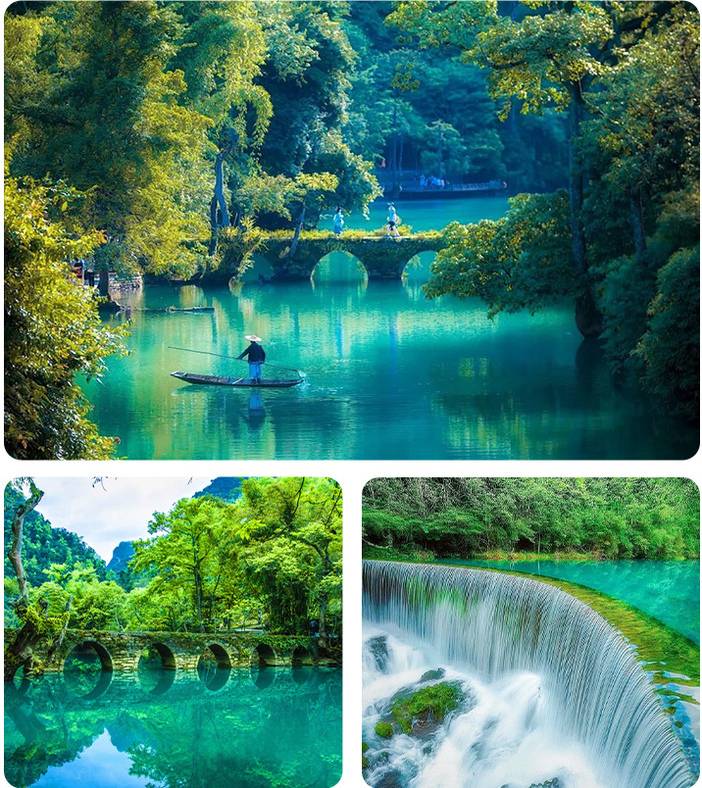 景区描述:景区全长7公里,得名于响水河上一座建于清道光年间的小七孔桥,融山、水、洞、湖、瀑为一体,巧夺天工,浑然天成。有悠蓝深邃的卧龙潭,林溪穿插的水上森林,潭瀑交错的六十八级瀑布,飞流狂泻的拉雅瀑布,古风亦存的七孔古桥,一起去探寻地球绿宝石的神奇与瑰丽。