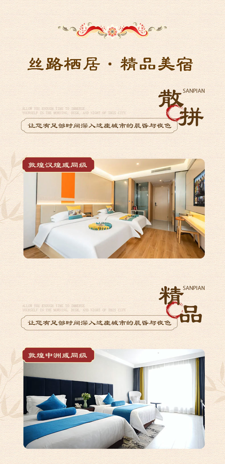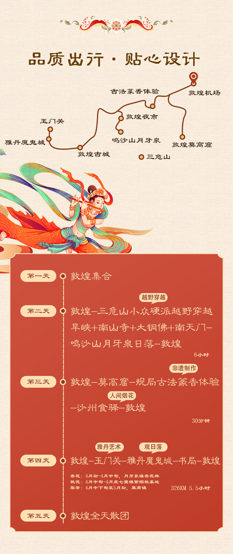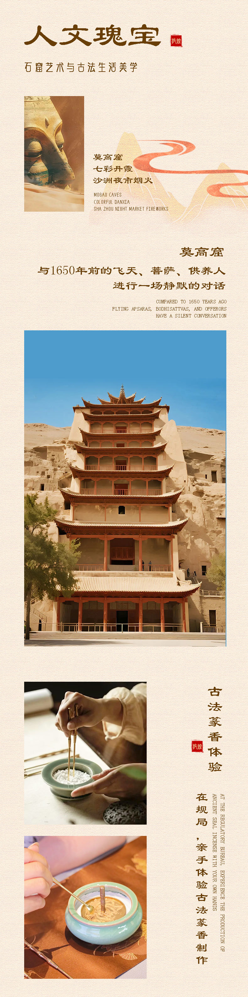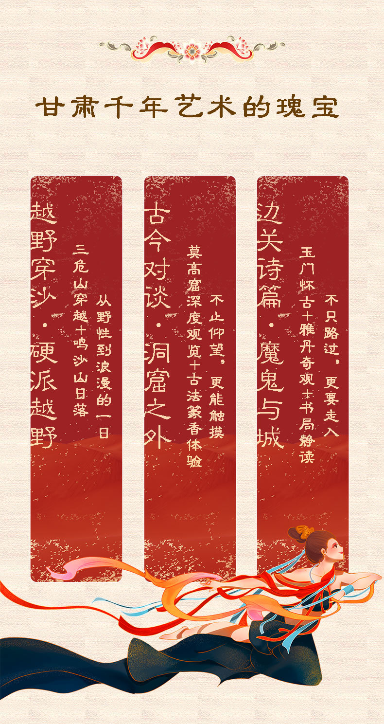 赠送 | 敦煌接送机/接送站,集合日24小时接机/接站(不指定车型),50万元旅游意外险,客服私人管家全程在线服务,古法篆香体验,书局打卡 | |