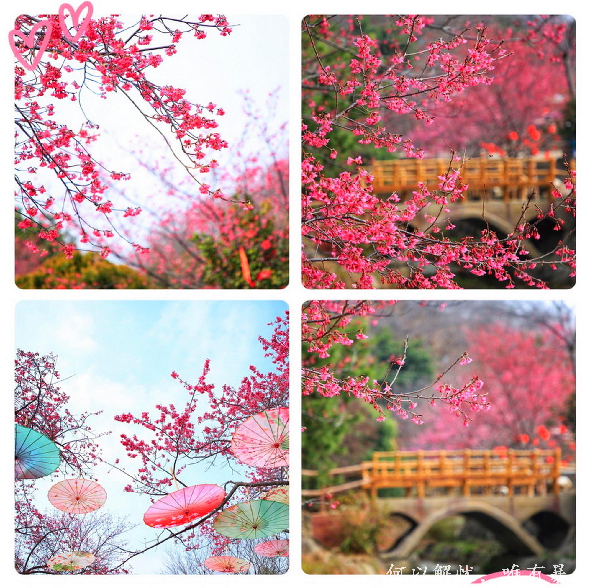区内的樱花品种有20多种,其中八重樱和寒绯樱居多。八重樱也叫关山,花色白色至深粉红色,开花较迟,由于有八重花瓣,称之为八重樱。寒绯樱花色是鲜红,适合温暖地区,却不耐寒,1月下旬已盛开。