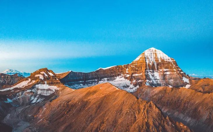 阿里的南部矗立着一座神山——冈仁波齐,相传古老的苯教发源于此地,祖师敦巴辛绕过天而降来此山,360位苯教神灵一直居住在此;印度教认为该山是神通广大的主神湿婆的居所,是世界的中心;耆那教认为该山是其祖师瑞斯哈巴那刹得道之处; 藏传佛教认为此山即是须弥山,是胜乐金刚的住所,代表着无量幸福。多个宗教虽然信仰各不相同,但公认冈仁波齐是世界的中心、万神之殿。