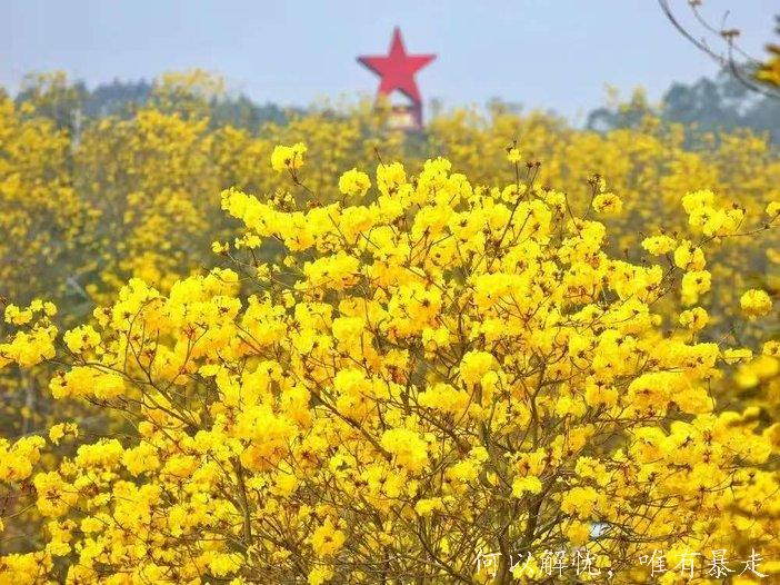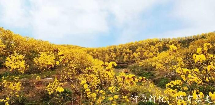 亮点2:珠三角最大最美黄花风铃观赏地@种植了近千亩数万株黄花风铃,满山遍野,满目金黄;