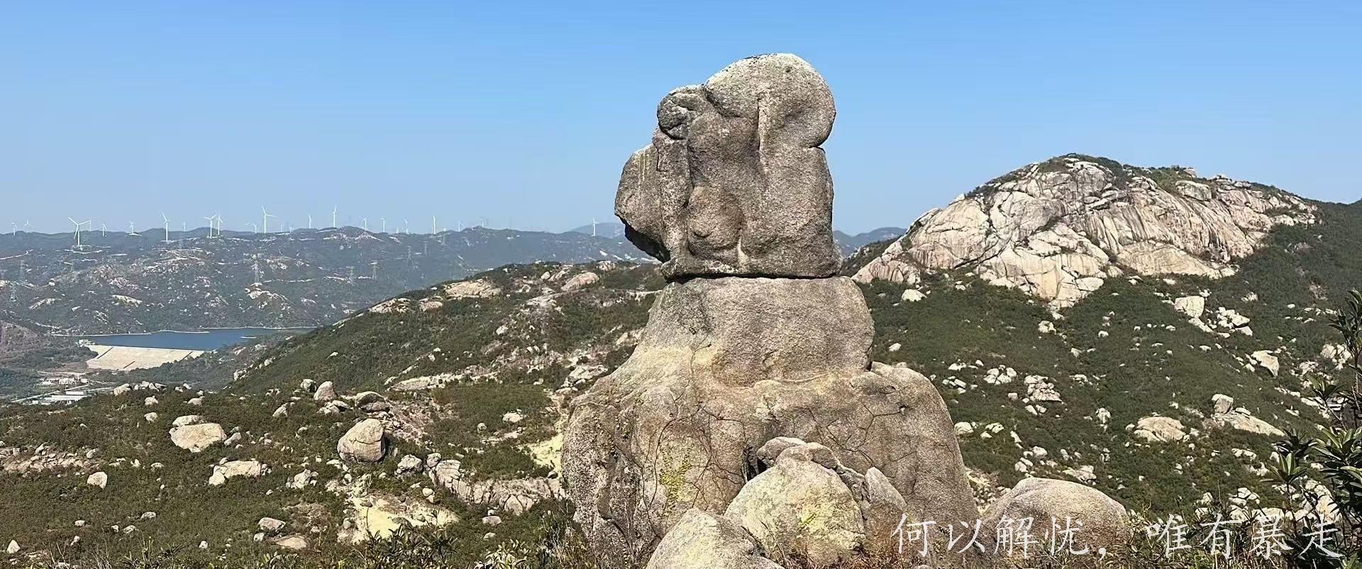 花岗岩巨石阵,象形石密集(飞马石、老牛石、狗子石、大象石等),登顶可俯瞰无垠海景、稻田盐田;