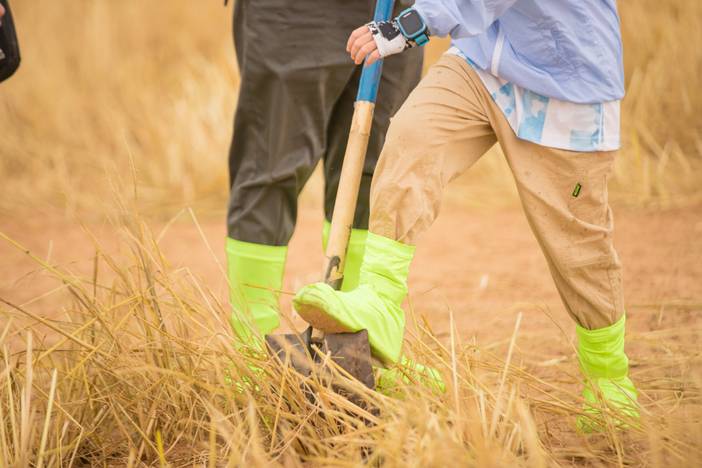 2:带领小朋友开扎麦草方格,麦草方格是目前为止全球治理沙漠最好的方式之一,方格将会把沙漠固定住不再随意流动,而草籽掉落在方格中更容易存活。
