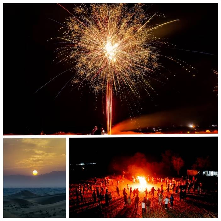 20:00-22:00在沙漠的自由活动时间,有一个篝火晚会等着我们。围着熊熊燃烧的篝火,我们可以分享故事、欢笑和享受这片刻的宁静。夜晚的天空也被烟花照亮,璀璨的烟火秀给这片沙漠带来了不一样的色彩。在这个时刻,我们可以完全放松身心,与大自然和同行的旅友们共同分享这个美好的瞬间。为了让这一体验更加难忘,希望每个人都能积极参与,互相分享,让这个篝火晚会和烟花秀成为我们共同的回忆。