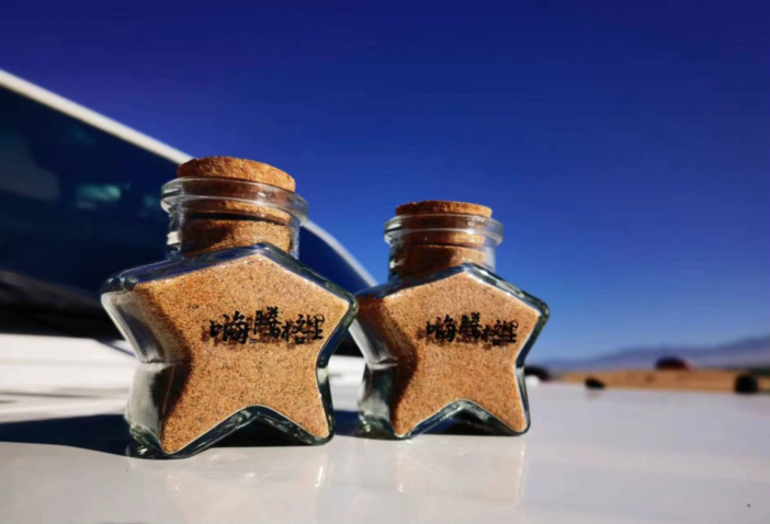 11:00 左右到达终点,在这里,领队老师会给大家每个人分发小星星形状的集沙瓶,你可以带走一瓶腾格里的沙;