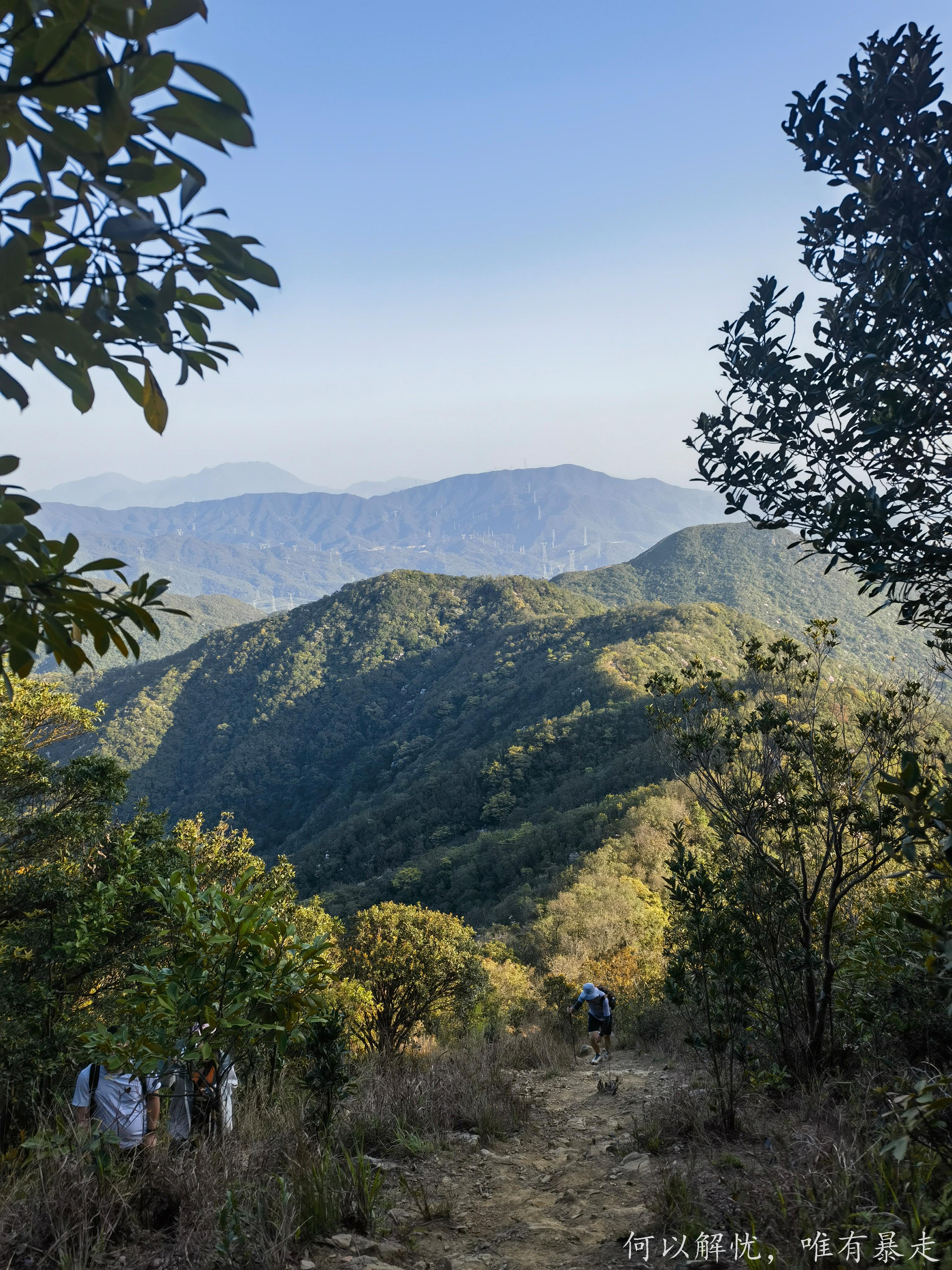 全程共19公里(2公里马路+17公里山路),起伏连绵大小山头共计108个,累计爬升1900米,约等于两倍大小梧桐山难度,要求有能轻松爬完大小梧桐山的体力才可去挑战