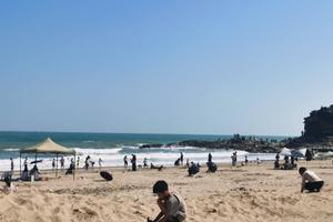 绵延几公里的平缓沙滩,有着美丽的近海景观