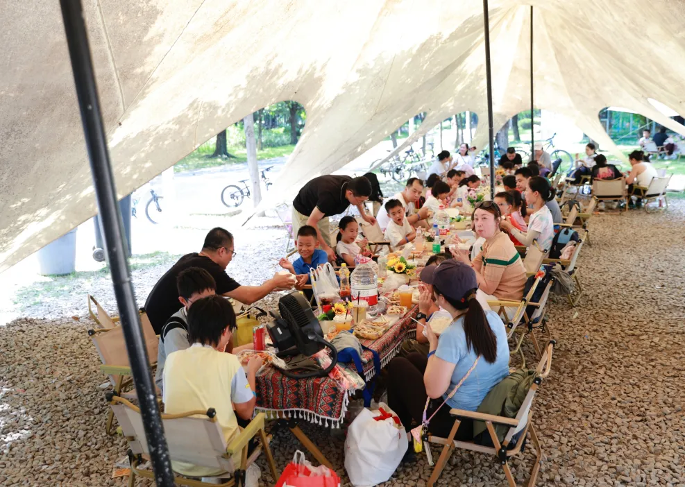 能量补给:营地配备桌椅,提供水果、饮用水;
