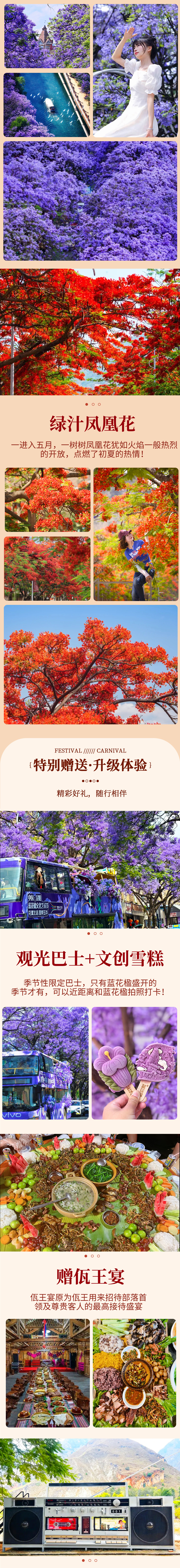 7.特别赠送:1)佤族特色佤王宴;2)绿汁镇网红录音机馆咖啡一杯;3)每人一张昆明网红双层蓝花楹环线观光巴士票 ;4)每人每天一瓶水、户外头巾及旅行三宝(赠送项目不退不换)
