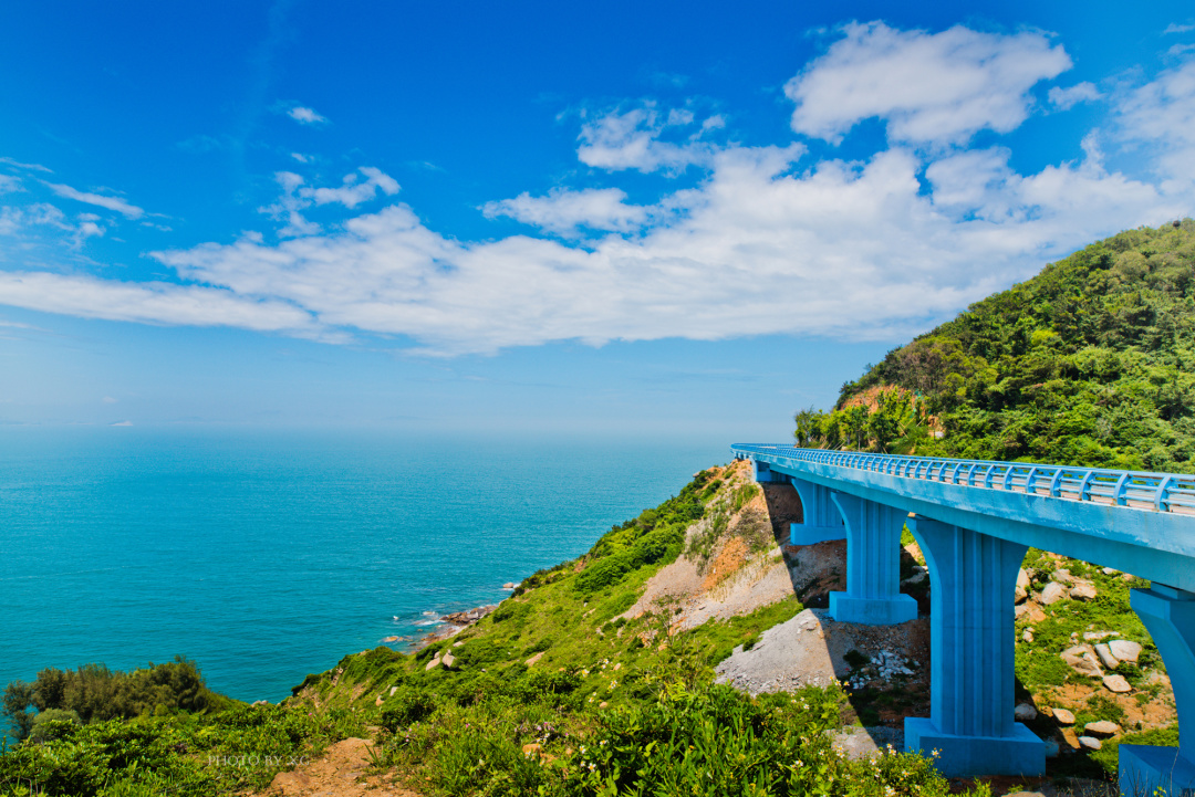 09:00 到达苏峰山停车场。可步行、租电动车( 参考20元/h)或坐接驳车(10元/人)浏览打卡6公里长的苏峰山环岛路,其中有两段蓝桥路拍照最为有特色。【苏峰山】是整个东山岛的制高点,一条蓝色的环岛公路藏在半山。伴着海风一路美拍,等风也等你。