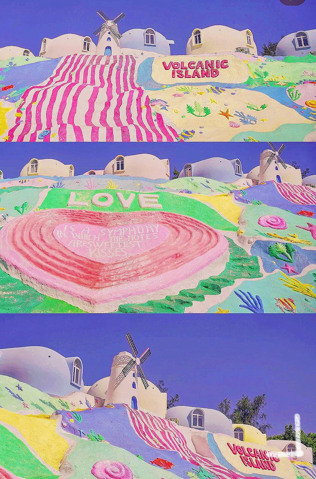 09:00 到达火山岛,这是中国唯一的滨海火山地质遗迹【漳州滨海火山国家地质公园】,不止能够看到2000万年前得火山遗迹,更能get多处美拍好视角。火山岛旅游休闲度假区以独特的火山地貌闻名,由数万根玄武岩节理构成的心形平台“海誓山盟台”随着潮水的涨落而若隐若现,形成一半是海水一半是火焰的奇景,这里还有很多网红打卡点:摩洛哥风格的粉红建筑“火山岛地学博物馆”,热气球、海上秋千和染着小清新色彩的巴士。