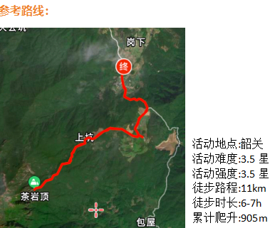 折返线,全程约11公里,累计爬升约905米,全程山林野路,部分路段需要手脚并用攀爬。