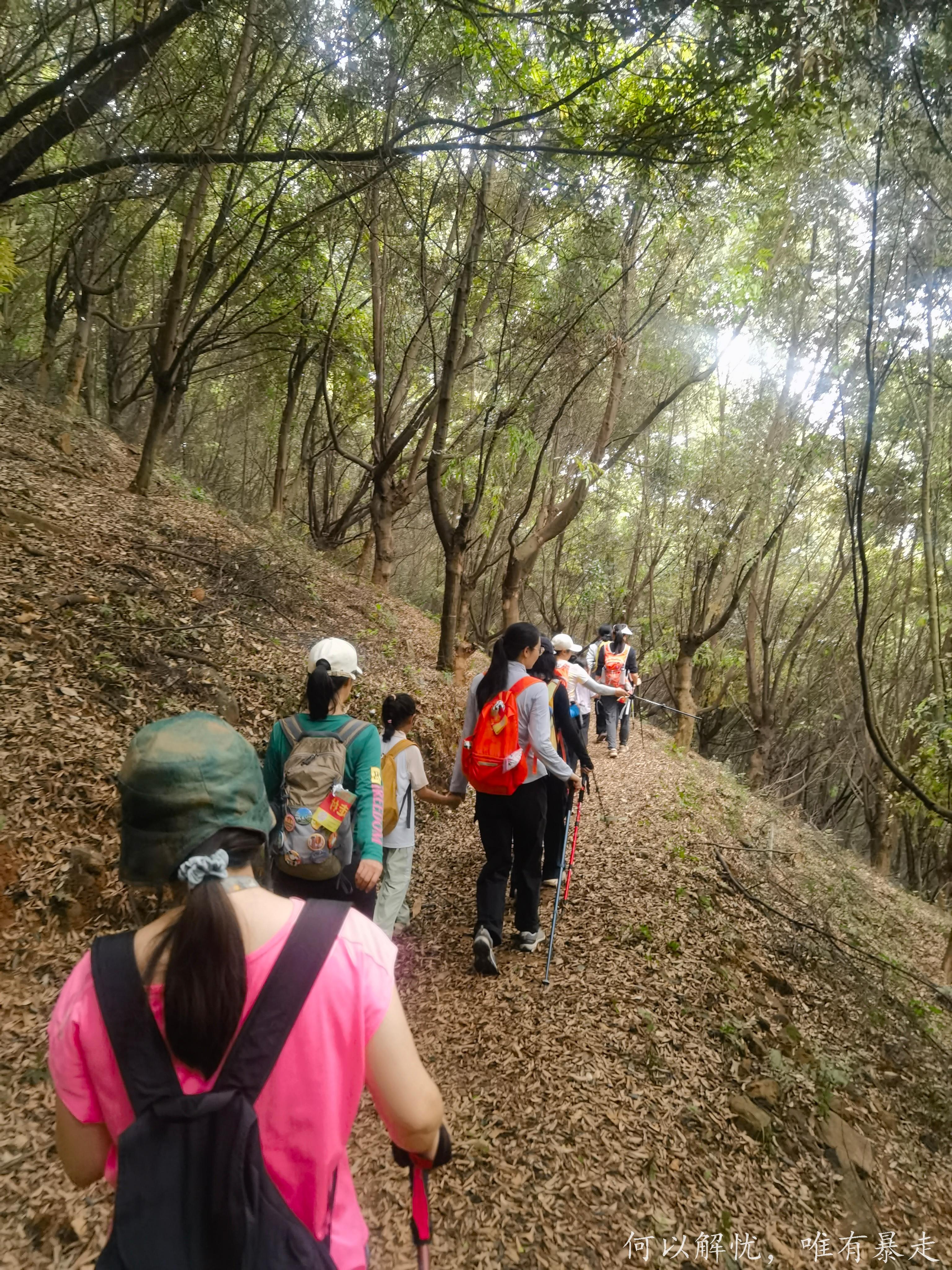 猪仔山连接凤凰山,除一开始的长坡外,其余都是小坡,比较容易行走,不容易累。路上可以看到写有猪仔店的大石头,树林较多,不易被晒,对于爱美怕晒黑又想爬山运动的美眉来说,最合适不过了。