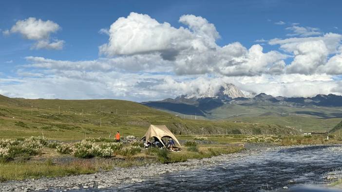 游览【塔公草原】(门票已含),这是一处令人惊喜的取景地。塔公沿路野花尽享盛放,绿茵的草地上偶尔有白底蓝色图案的账蓬随意地支着,可能还会有牦牛、马或羊等悠闲吃草身影闯进视野里,你的心情也会变得明朗而随意起来,游览时间约30分钟