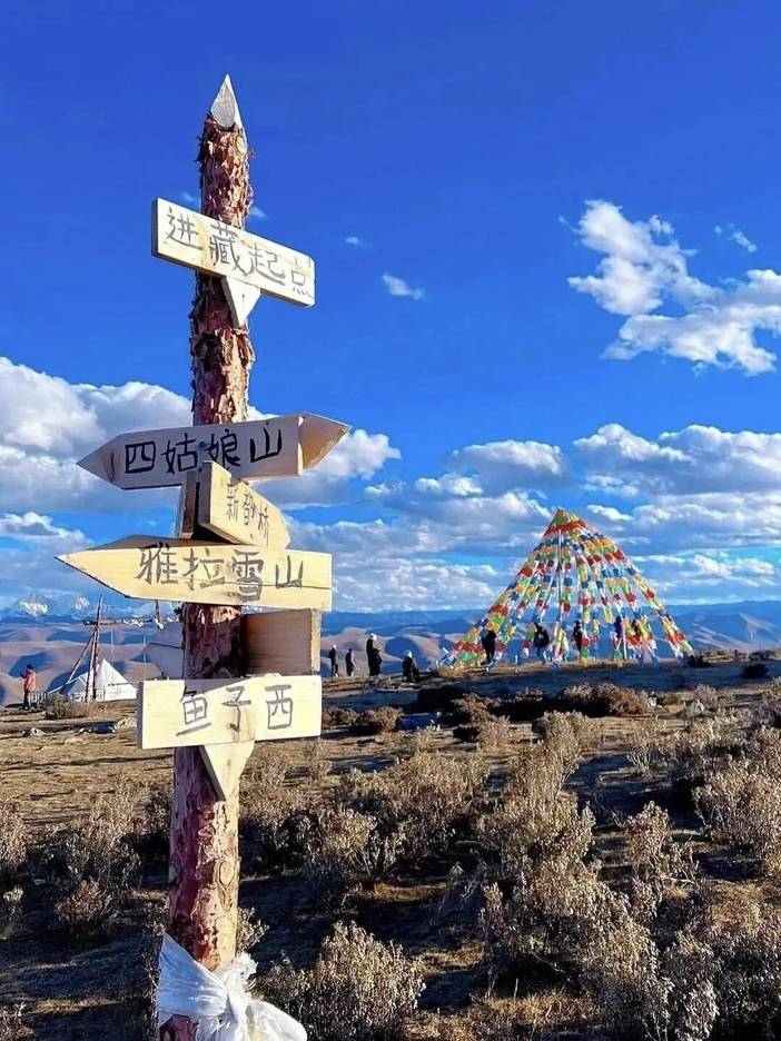 明星同款日落打卡地。360度的观景平台,四周被雪山环抱。这里可以同时看到亚拉雪山,贡嘎群山,青绕神山。天气好傍晚还有震撼的日照金山,据说看到日照金山可以幸运一整年哦