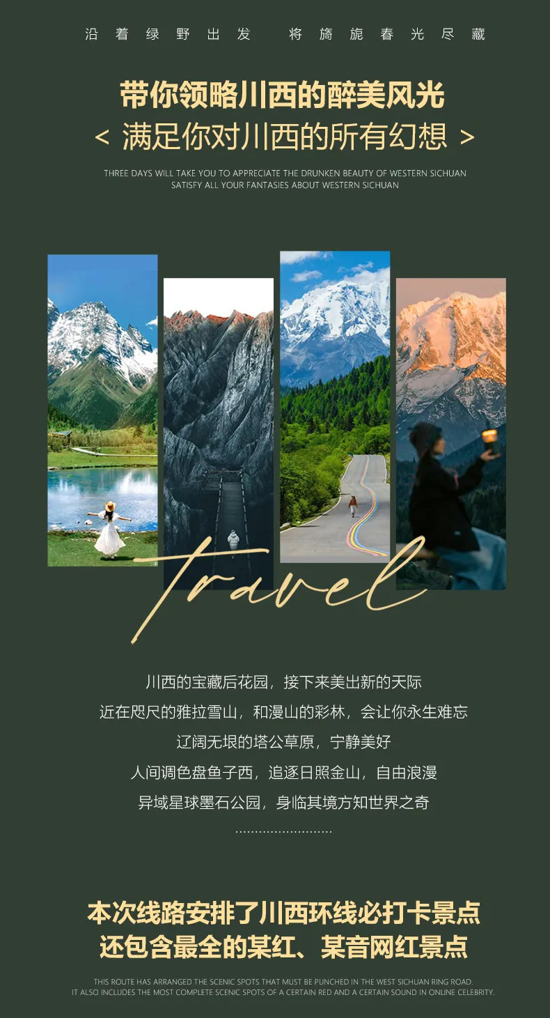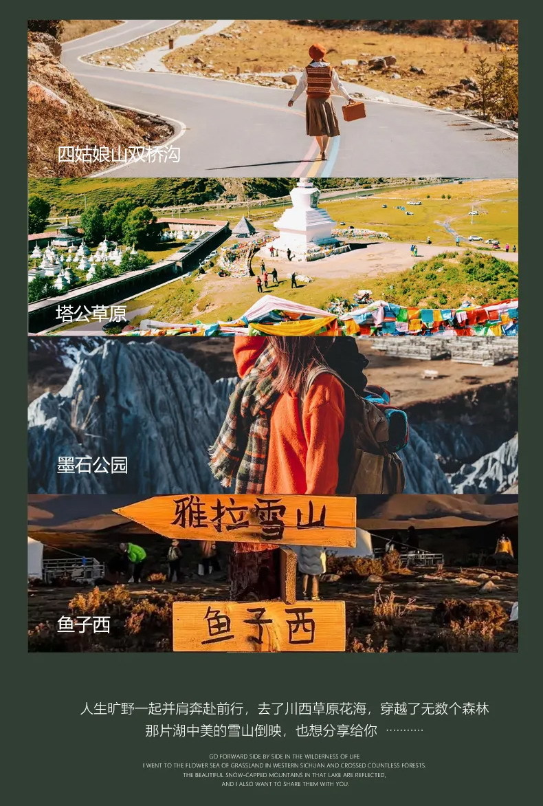 2、如鱼子西和格底拉姆无法前往,替换为八郎生都村、扎真、新都桥观景台等同类型观景点,如产生相关景点中转车、清洁费等费用,需自理。