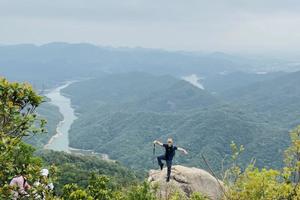 11:00 到达了哥髻顶峰。在了哥髻两块巨石之上,远眺花都美景,俯瞰九龙湖